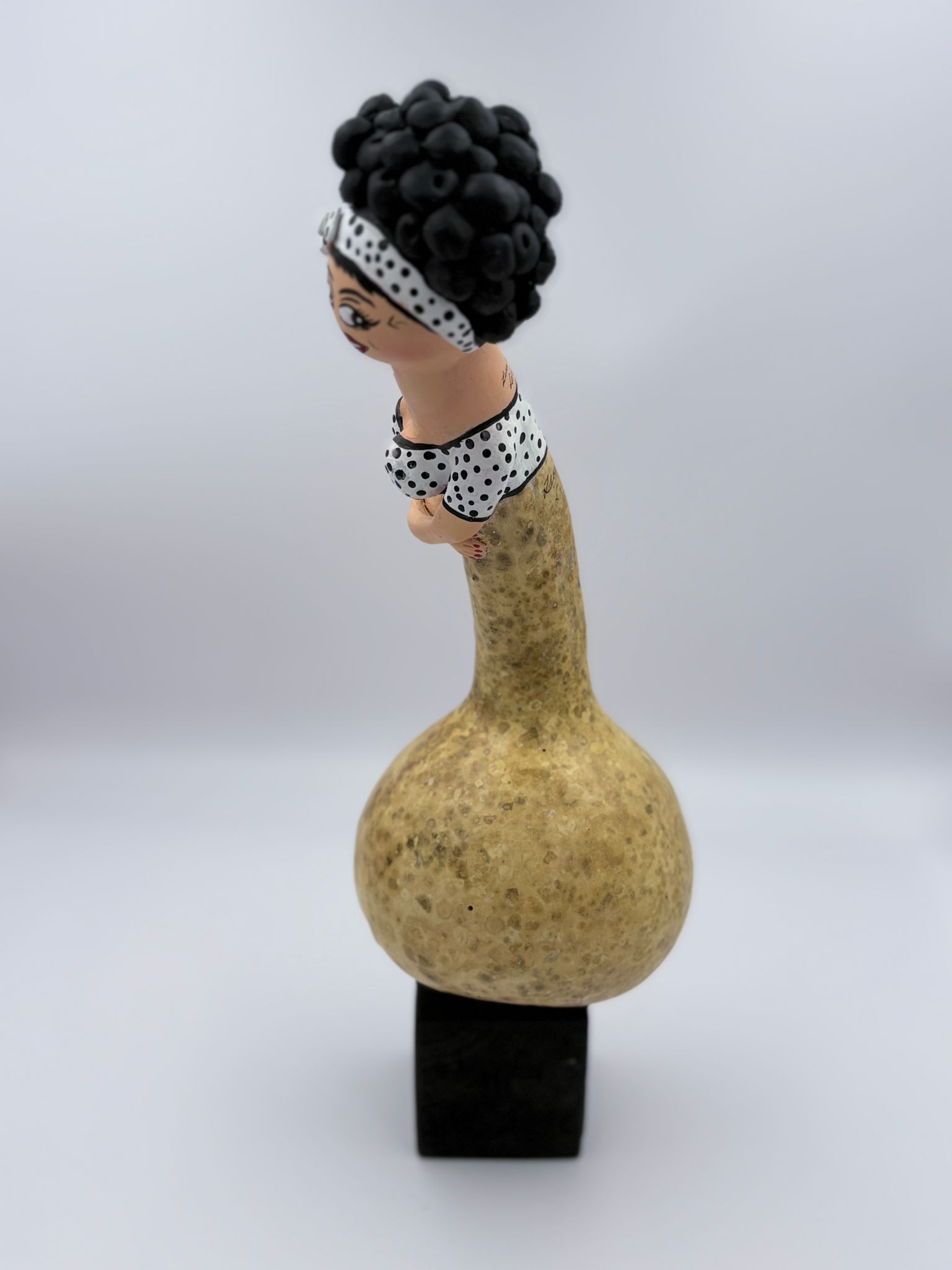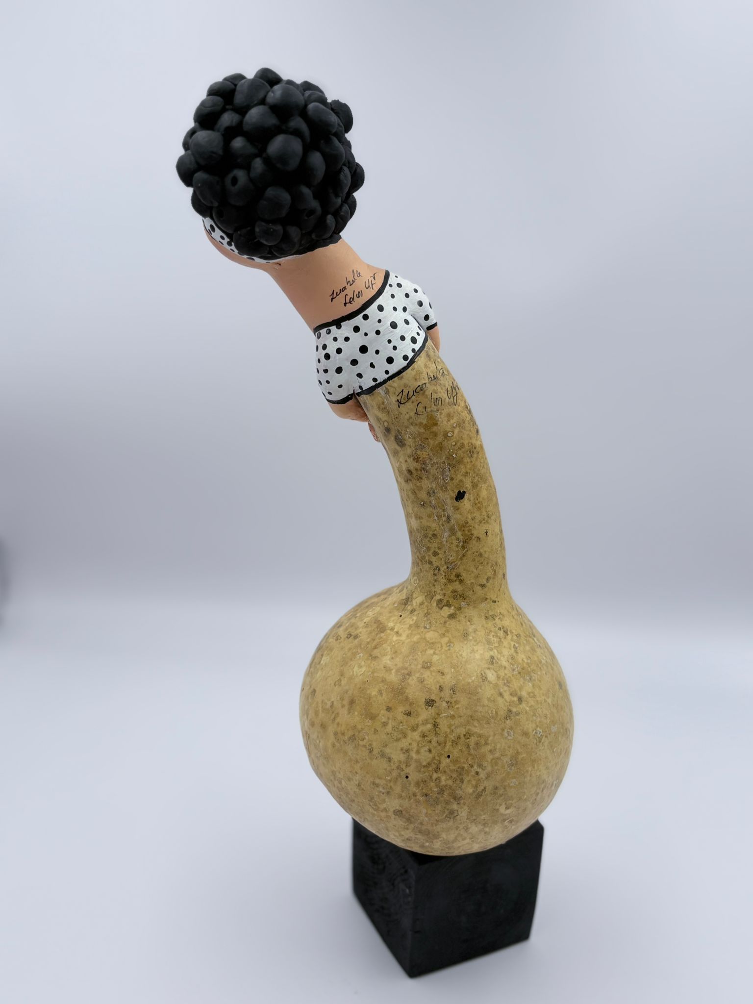 Materials: Gourd, ceramic clay, acrylic paint